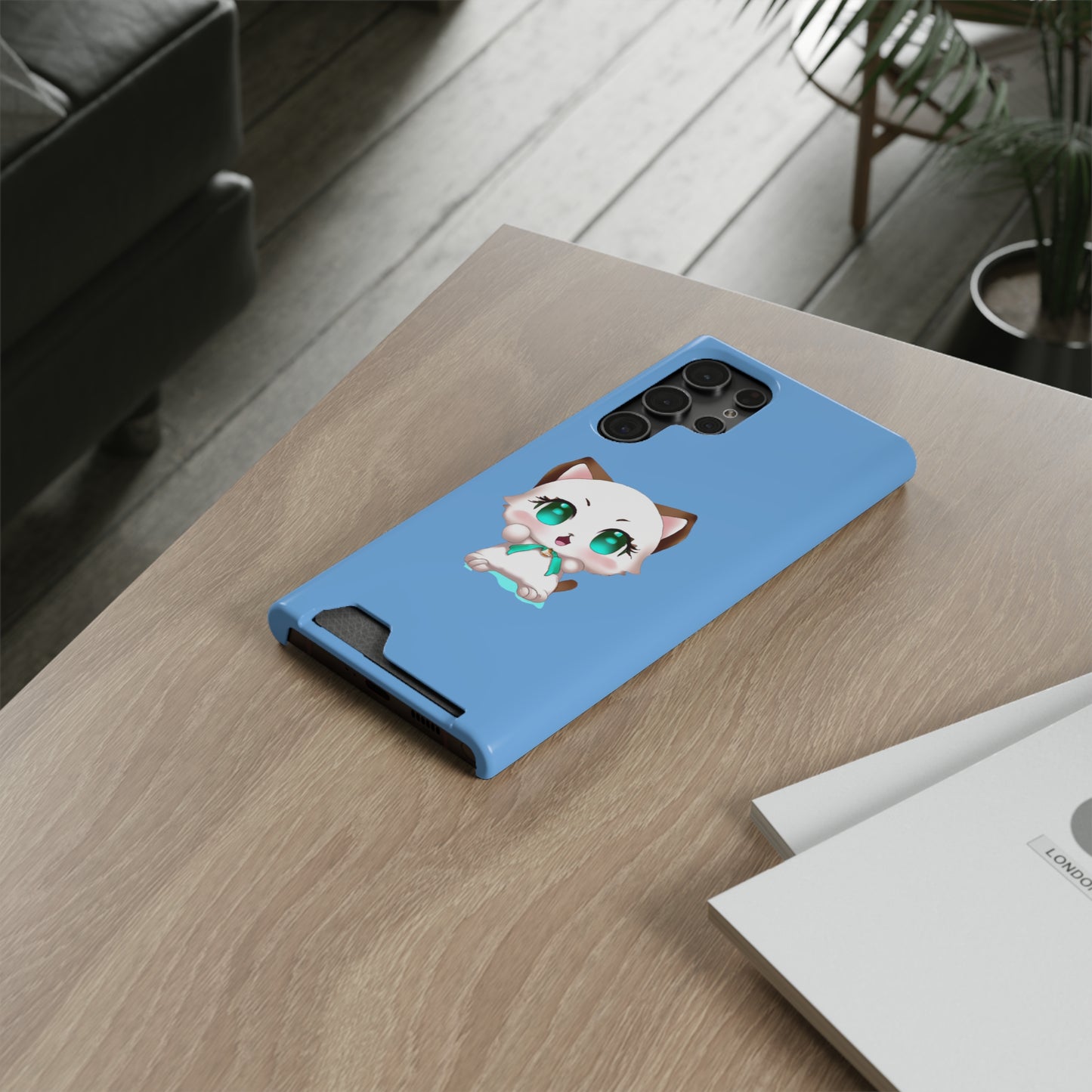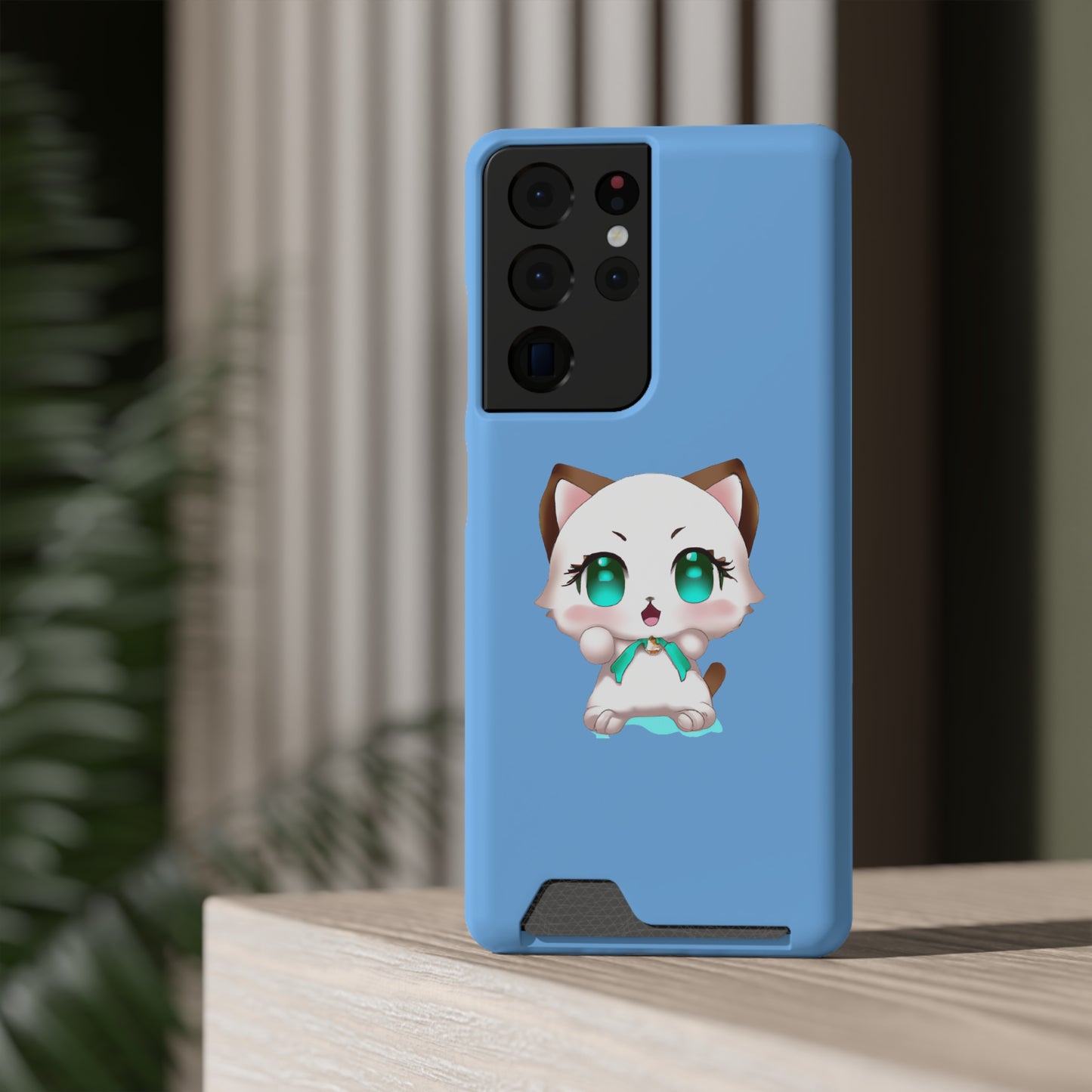 iPhone 13 and Samsung S21, S22 Cases with Card Holder Ft. Cute Kitty