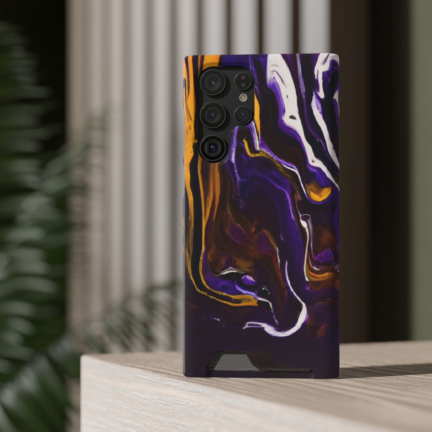 iPhone 13 and Samsung S21, S22 Cases with Card Holder Ft. Purple Tiger Stripes